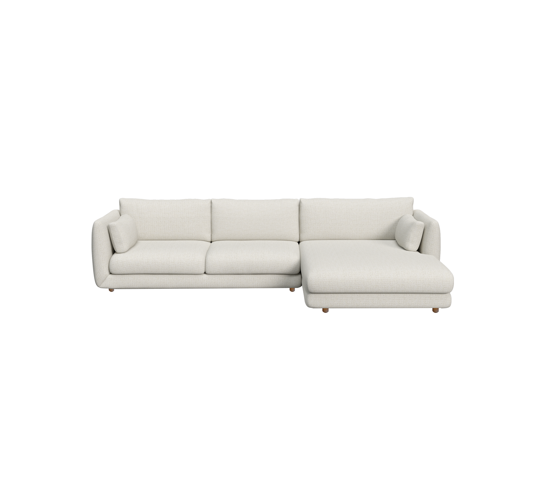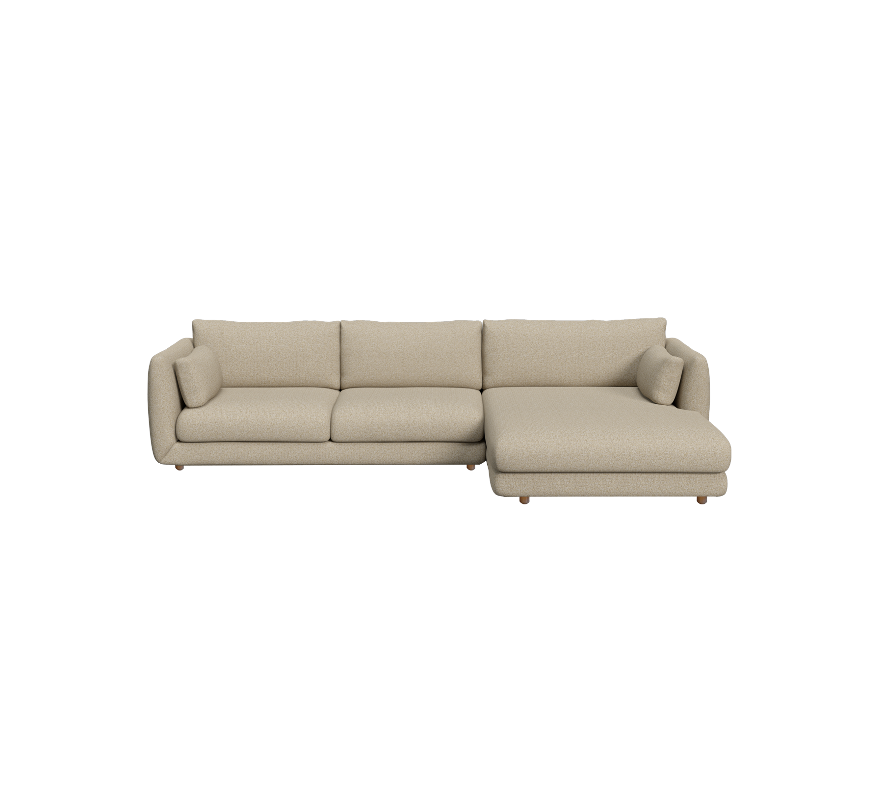 Bloom 2-seater sofa with chaise longue, left and teak legs: